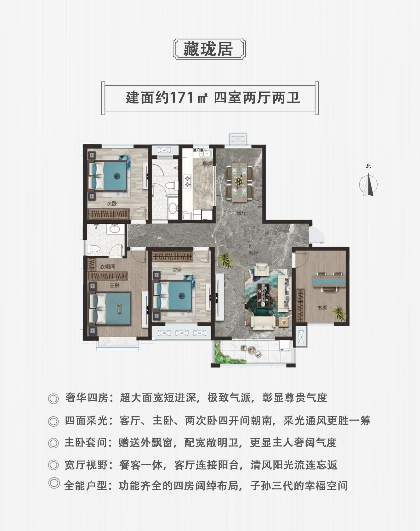 藏珑居 四室两厅两卫 建筑面积约171㎡